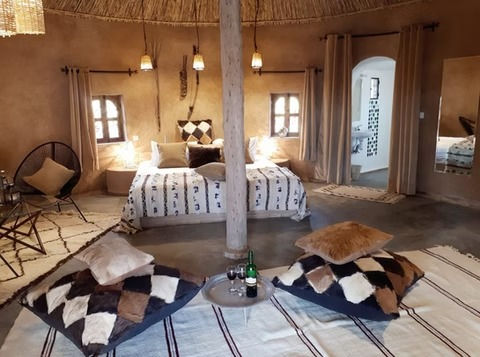 Stay in a luxurious Eco Villa Suite, built using over 20,000 upcycled plastic bottles, a tourism first for Morocco. Each suite is stylishly finished, eco-conscious, and features its own en-suite bathroom.